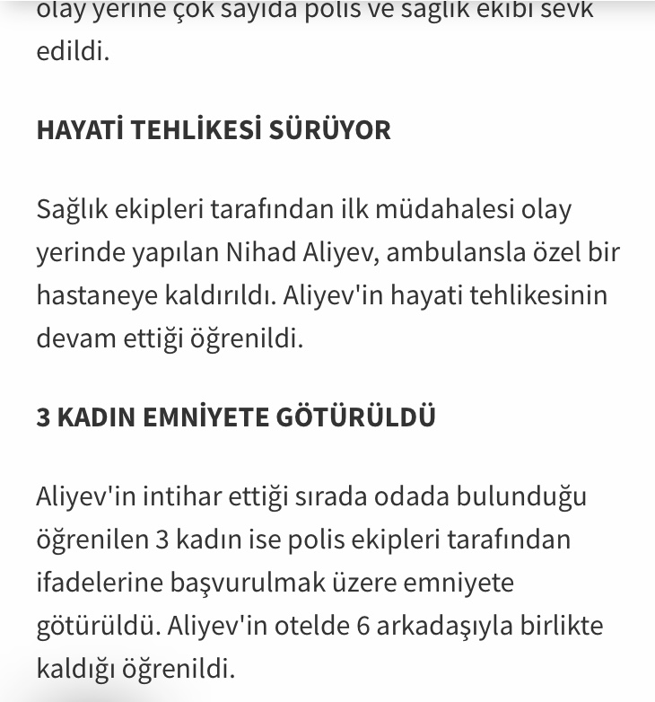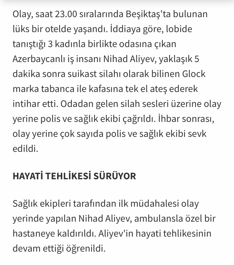 Məlumatına görə, hadisə dünən axşam saatlarında İstanbulun Beşiktaş səmtindəki lüks otellərdən birində baş verib. Hadisənin intihar olması, eyni zamanda ehtiyatsızlıqdan baş verdiyinə dair məlumatlar var.