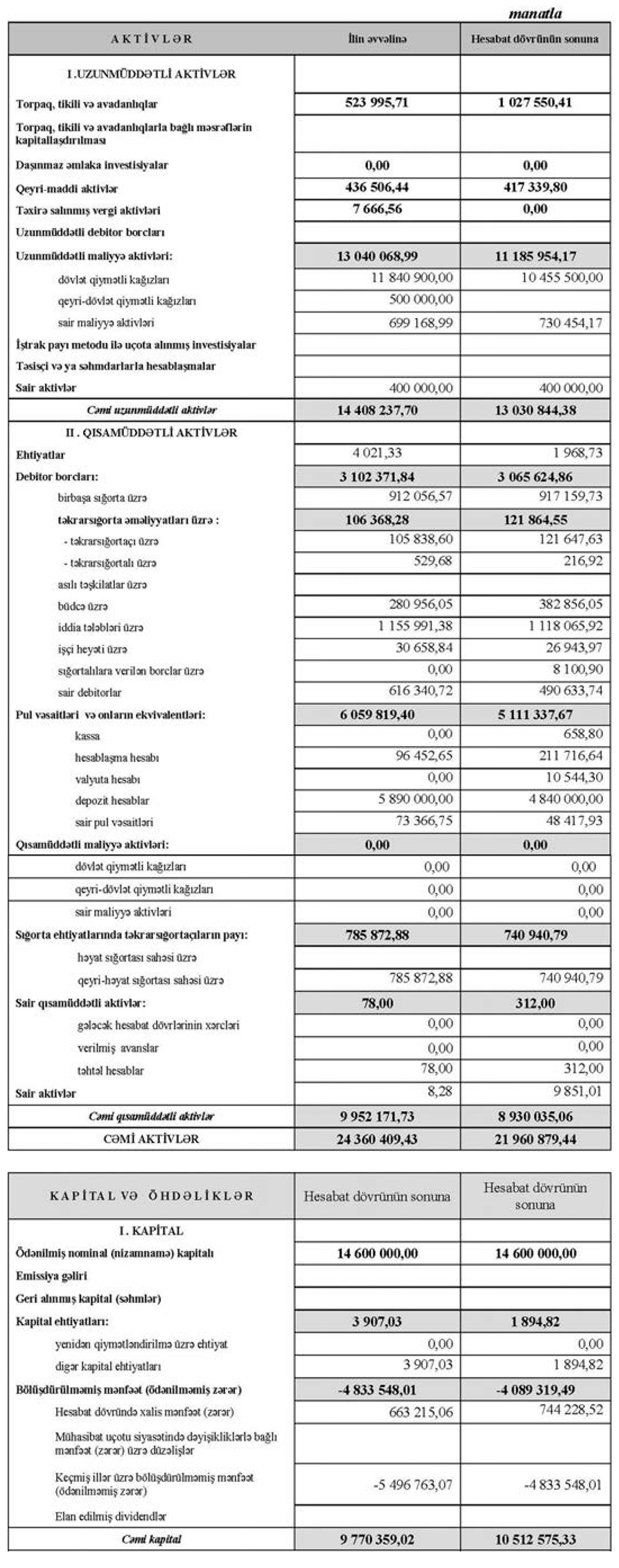 "AtaSığorta" ASC-nin 2020-ci il üçün maliyyə hesabatı