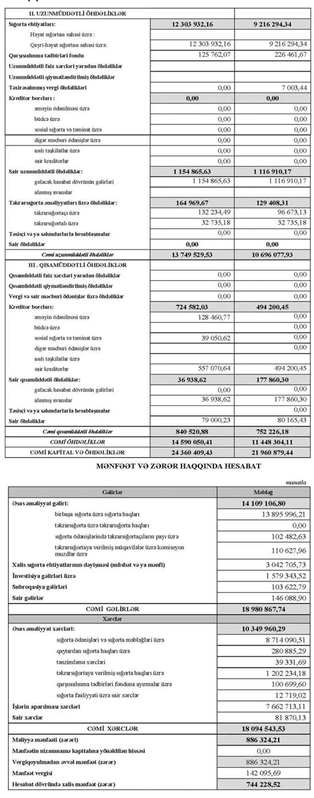 "AtaSığorta" ASC 2020-ci ili 744 min manat xalis mənfəətlə başa vurub. Şirkət 2019-cu ili 663 min manat xalis mənfəətlə bağlamışdı.
