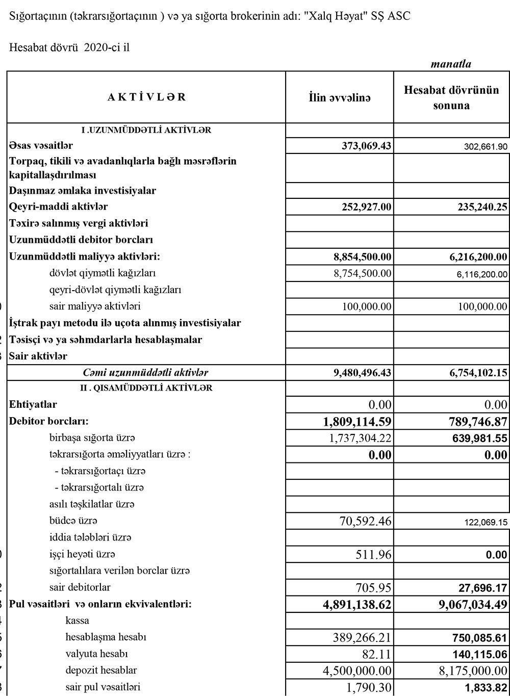 "Xalq Həyat" Sığorta Şirkəti ASC 2020-ci ili 201 min manat xalis mənfəət ilə başa vurub. Halbuki, şirkət fəaliyyətə başladığı ilk il olan 2019-cu ili 1 milyon 109 min manat zərər ilə bağlamışdı.