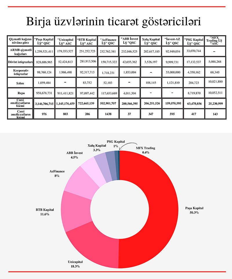 Marja xəbər verir ki, hesabatda birja üzvlərinin ticarət göstəricilərinə də yer verilib.