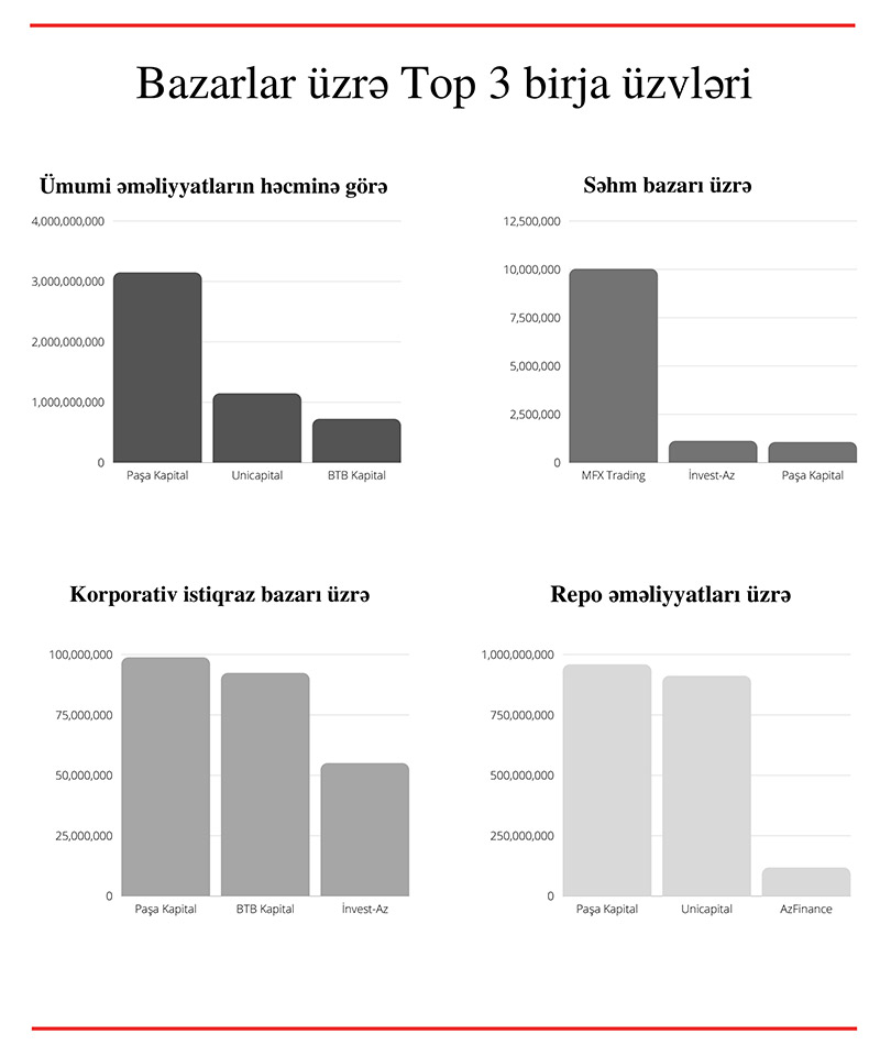 Hesabatdan məlum olur ki, 2021-ci ilin 1-ci rübü ərzində səhm bazarı üzrə əməliyyatların həcminə görə 1-ci yeri "MFX- Trading İnvestisiya Şirkəti” ASC tutub.