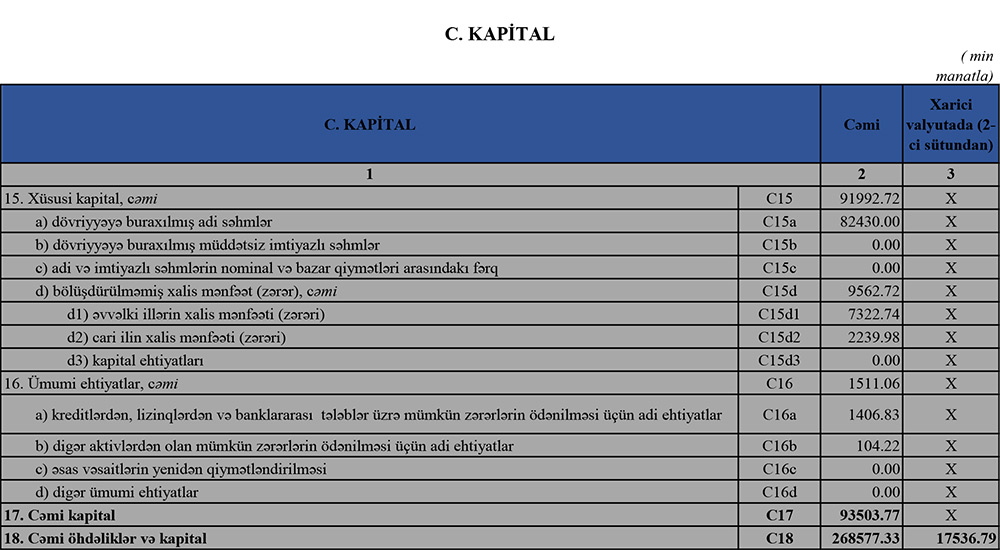 31 Mart 2021-ci il tarixində "Naxçıvanbank" 87 milyon 291 min manat məcmu kapitala malik olub.