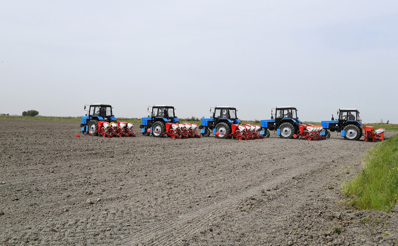 Sonra fermer Elşən Xəlilovun pambıq tarlasında səpinə start verilib.