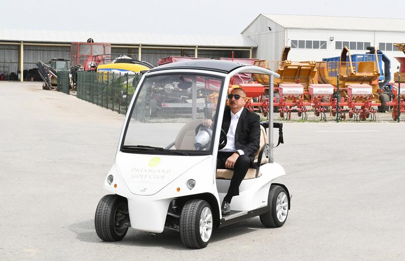 Prezident İlham Əliyev aqroparkın heyvandarlıq kompleksi və süni göl ilə tanış olub.