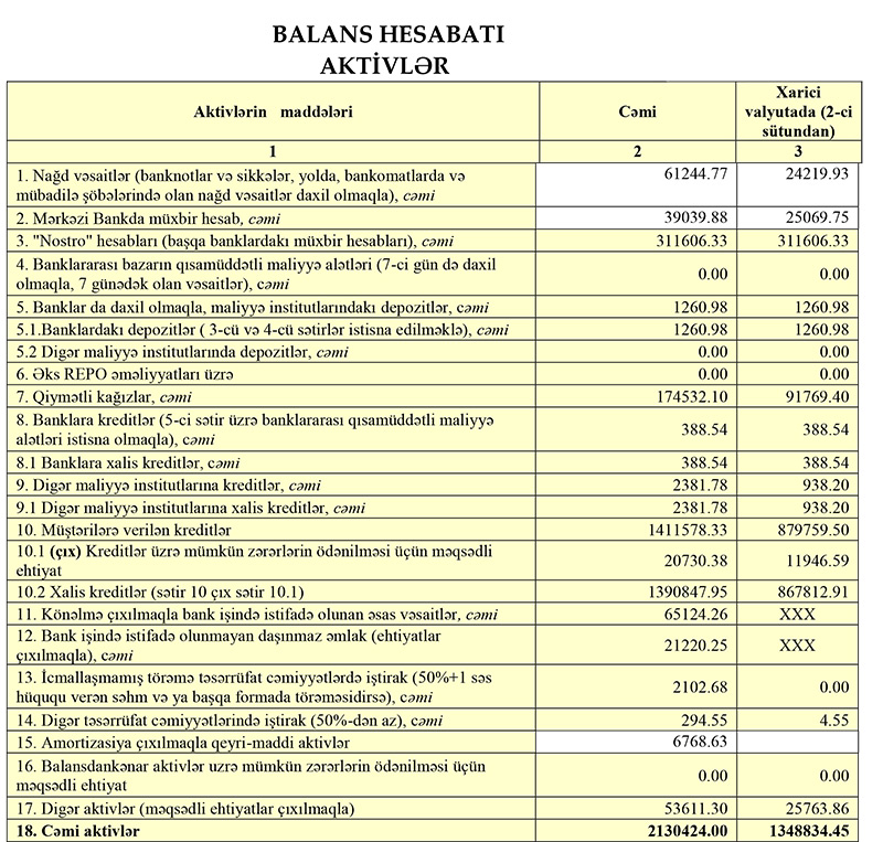 AKTİVLƏRİ 2 MİLYARD MANATDAN ÇOXDUR