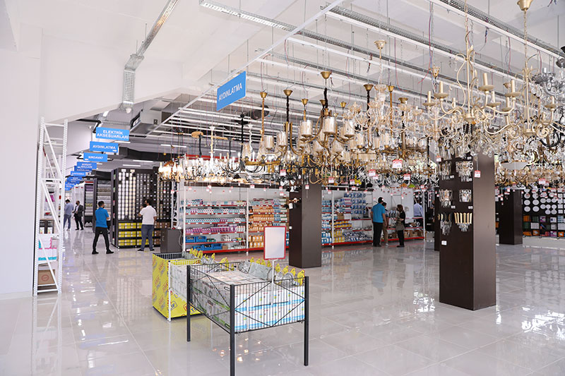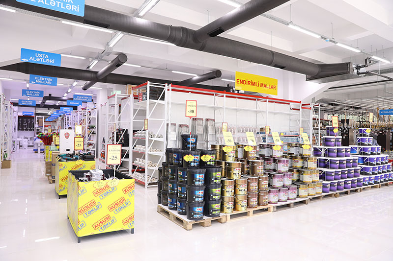 Mağaza daxilində müştərilərin rahat seçimi və vaxtlarına qənaət etmələri üçün boya, yapışdırıcı, plastik boru və fitinqlər, gips, alçı, o cümlədən məşhur markalara məxsus istilik sistemləri, divar kağızları, çilçıraqlar, müxtəlif növdə elektrik, məişət malları, ev aksesuarları, ən müasir usta alət və texnikalarının sərgiləndiyi xüsusi bölmələr qurulub.
