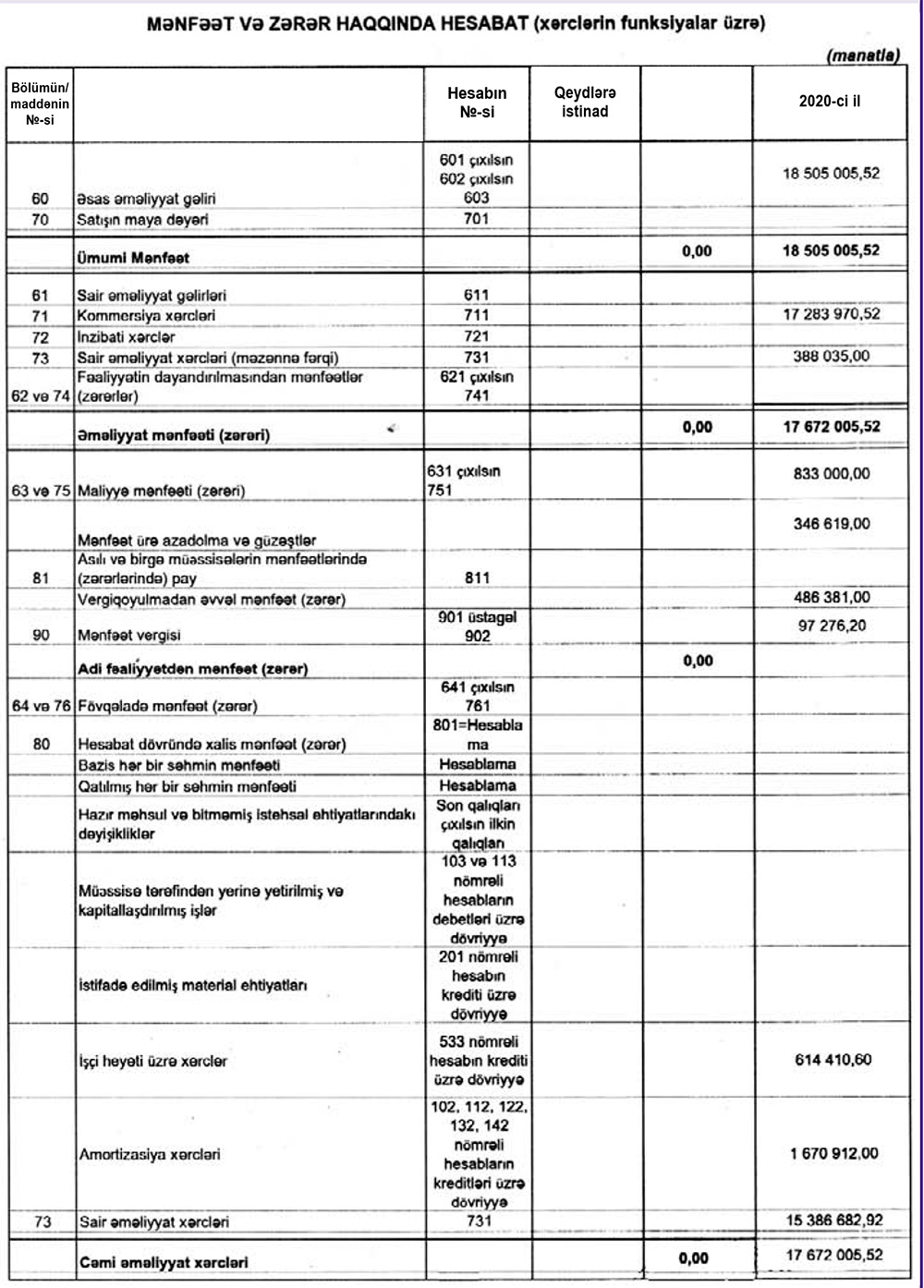 Səhmdar cəmiyyətinin maliyyə hesabatına görə, bu, 2019-cu ilə nisbətən 95,5% və yaxud təxminən 2 dəfə çoxdur.