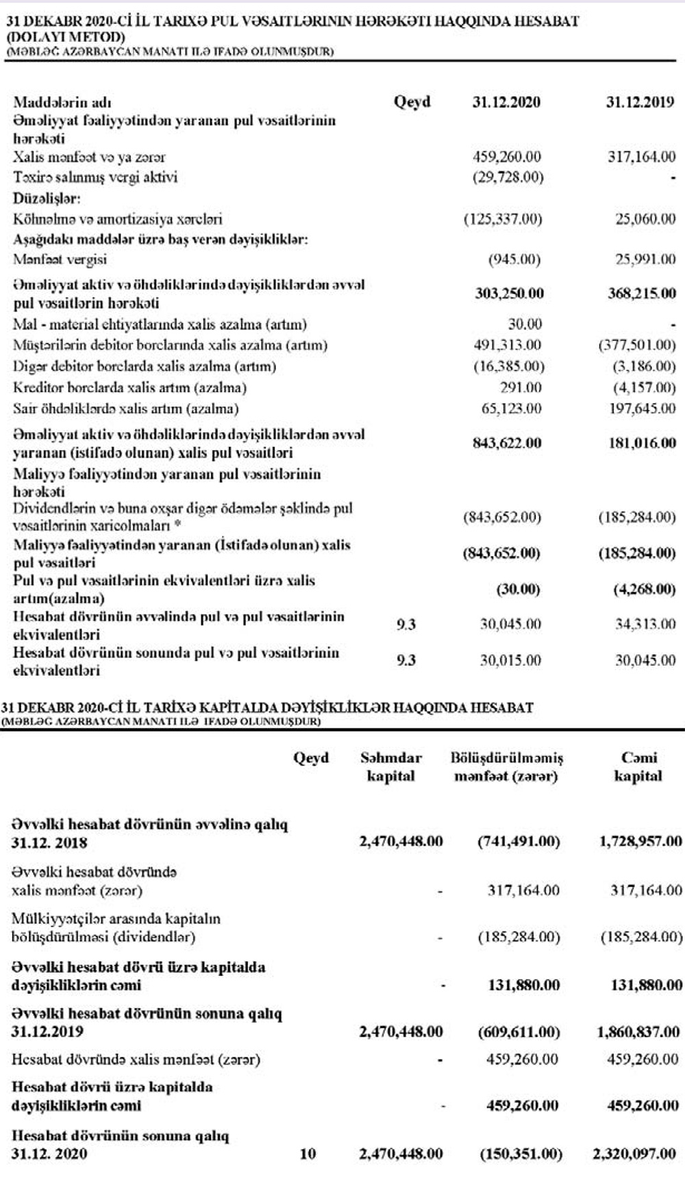 Marja şirkətin maliyyə hesabatına istinadən xəbər verir ki, 2019-cu ildə 488 min 746 min manat təşkil etmiş əsas əməliyyat gəlirləri 2020-ci ildə də 488 min 746 min manat olub. Ötən il ASC 148 min 643 manat sair əməliyyat gəlirləri də əldə edib.