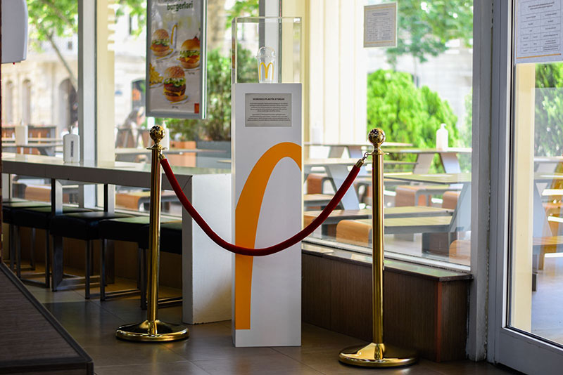 Bu eksponat “McDonald's Azərbaycan” şirkətinin plastikdən istifadəni əhəmiyyətli dərəcədə azaltması, eyni zamanda bioparçalanma qabiliyyətinə malik və sertifikatlaşdırılmış materiallardan istifadəyə keçməsi ilə bağlı özünəməxsus bir ismarışdır.