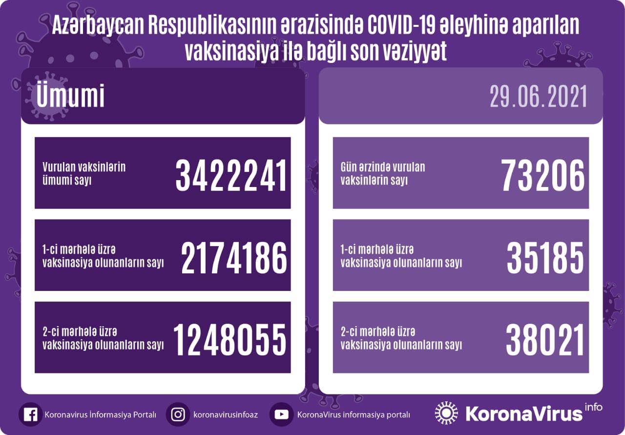 Bu gün Azərbaycanda koronavirus əleyhinə 73 min 206 vaksin vurulub.