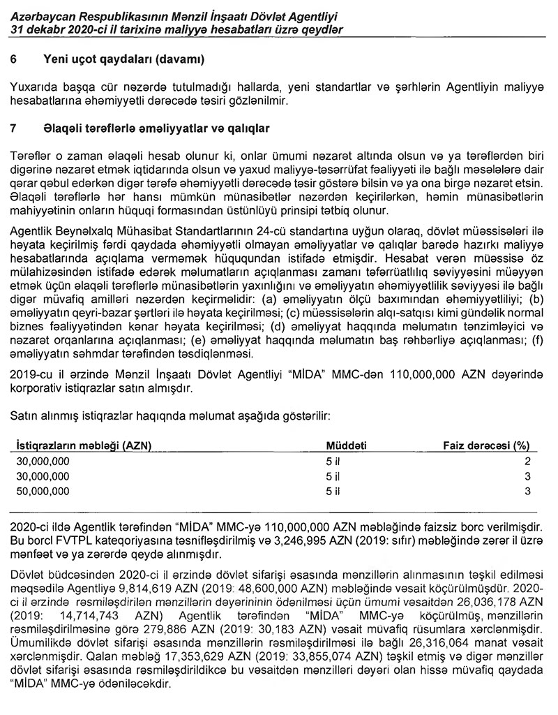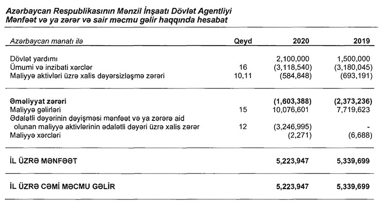 Azərbaycan Respublikasının Mənzil İnşaatı Dövlət Agentliyi (MİDA) 2020-ci ili 5 milyon 223 min 947 manat xalis mənfəət ilə başa vurub. Bu, 2019-cu illə müqayisədə cüzi azdır. Agentlik 2019-cu ili 5 milyon 339 min 699 manat xalis mənfəət ilə bağlamışdı. Ötən ilin xalis mənfəəti daxil MİDA-nın bölüşdürülməmiş xalis mənfəəti 13 milyon 578 min 474 manata çatıb.
