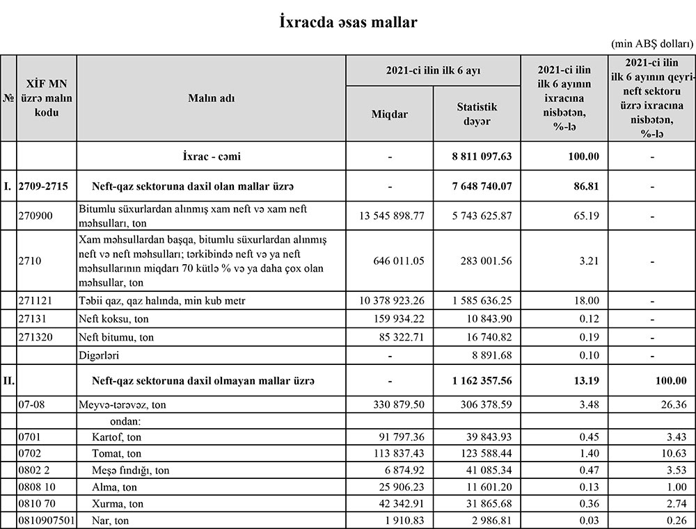 2021-ci ilin ilk 6 ayının ixracının 65.19%-ni xam neft ixracı formalaşdırıb.