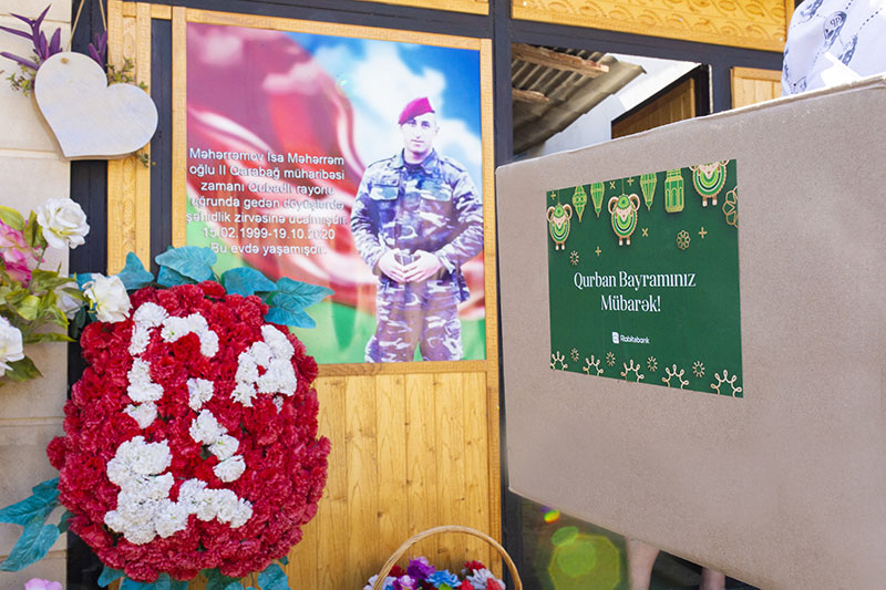 Qurban bayramı ərəfəsində şəhidlərin doğmalarını ziyarət etməyi bank özünə borc bilib. Bayram günlərində Bank əməkdaşları 100-ə yaxın ailənin ziyarətində olub və bayram payları aparıb. Bankın maliyyə dəstəyi ilə hazırlanmış bayram sovqatlarından ibarət qutular ailə üzvlərinə təqdim edilib. Görüşdə əməkdaşlar öz mənəvi dəstəyini hiss etdirməklə onlara minnətdarlıq bildirməyə və bacardığı qədər təsəlli verməyə çalışıb.
