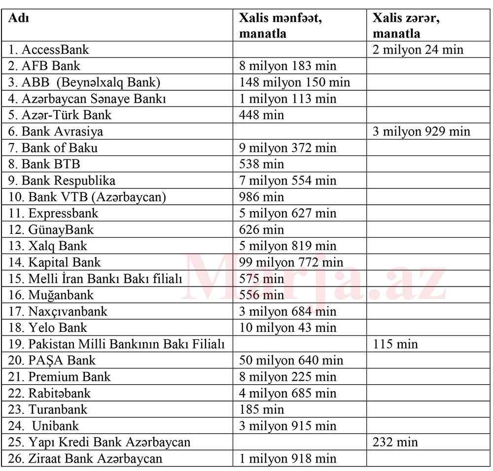 22 bank mənfəət, 4 bank zərər açıqladı - SİYAHI, YENİLƏNİB