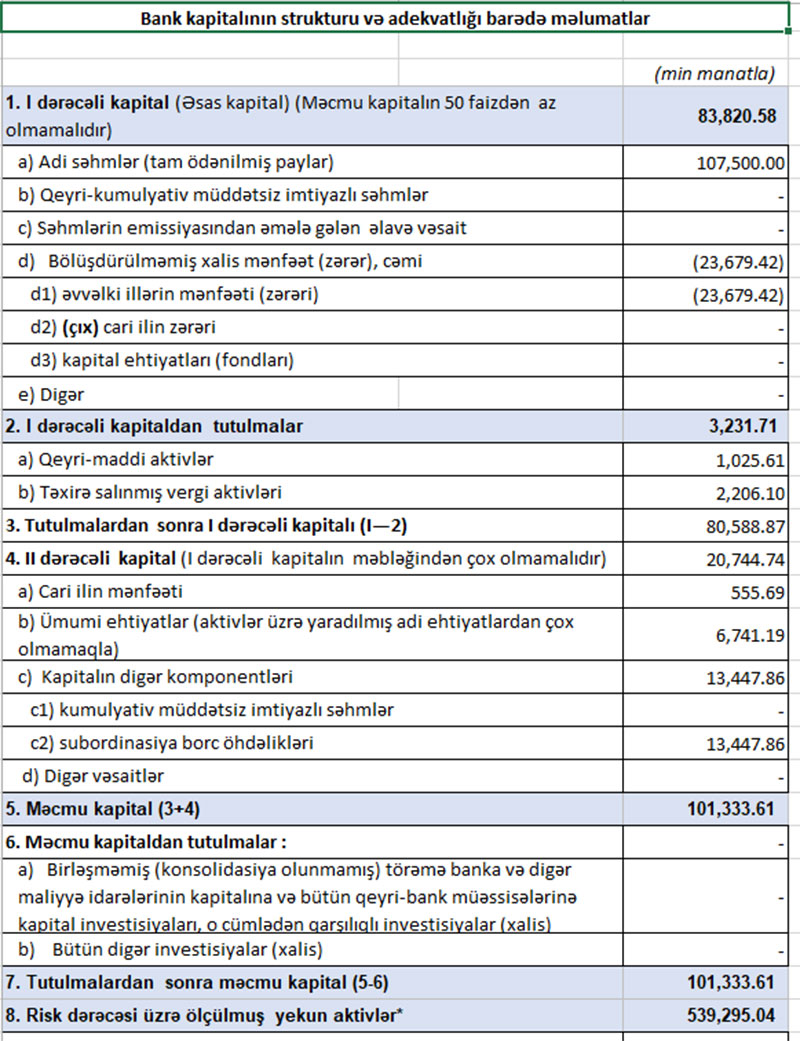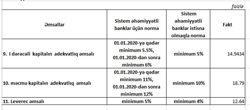 Bank normalara artıqlaması ilə cavab verir. Belə ki, “Muğan Bank”da 1-ci dərəcəli kapitalın adekvatlıq əmsalı 14,94% (norma minimum 5%), məcmu kapitalın adekvatlıq əmsalı 18,79% (minimal 10% olmalıdır), Leverec əmsalı 12,64% (minimal 4% olmalıdır) təşkil edib.