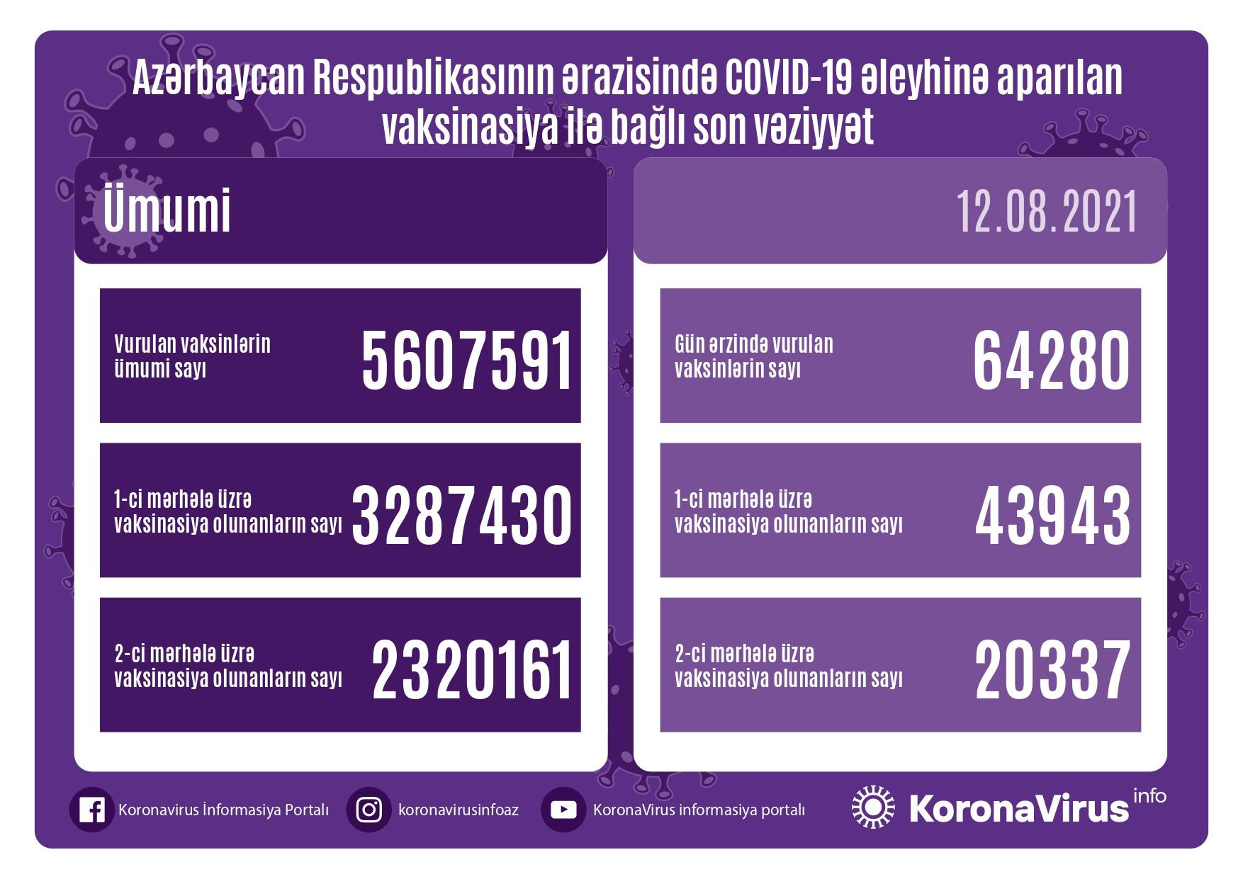 Azərbaycanda bu gün 64 280 nəfər vaksinasiya olunub.