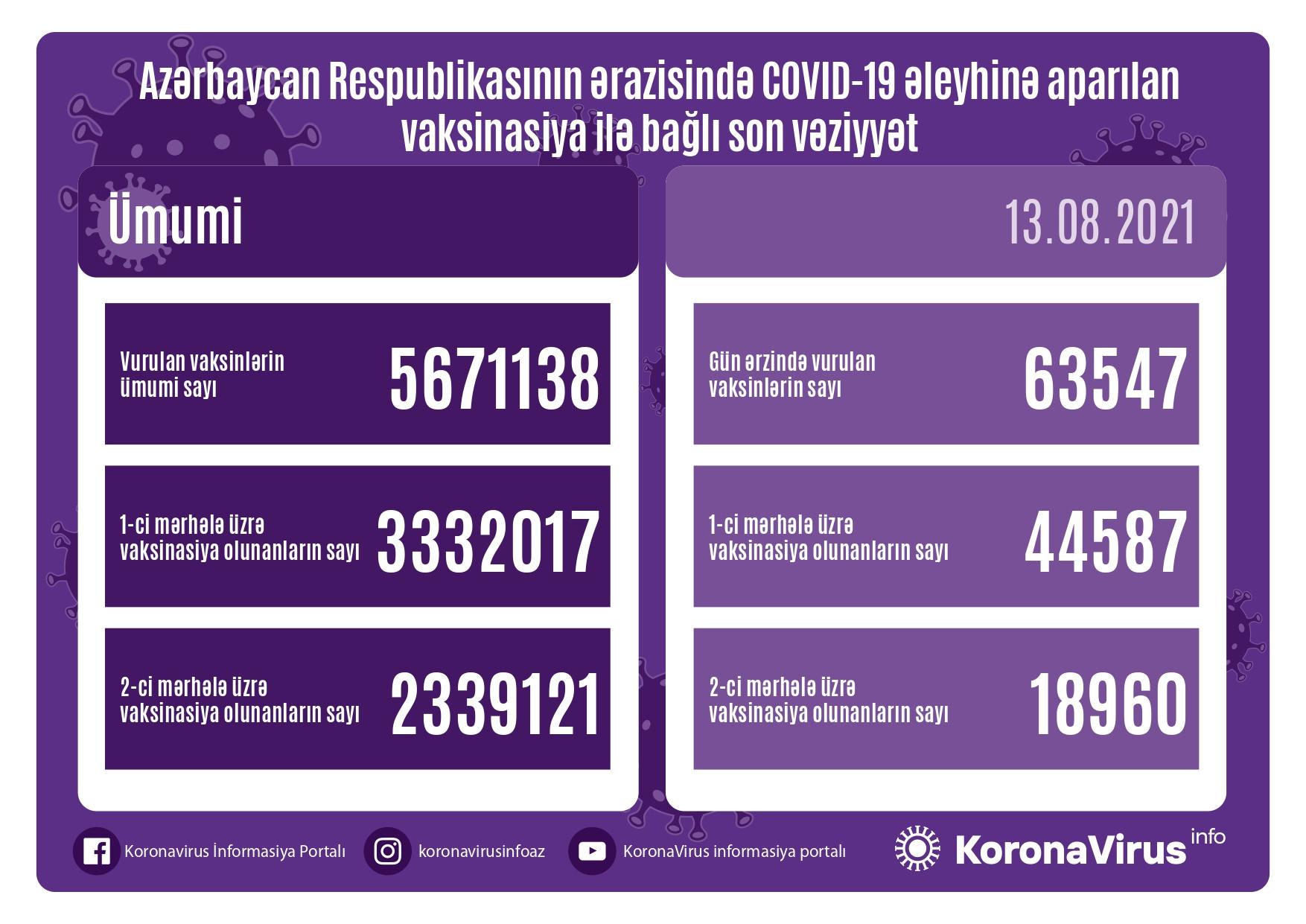 Azərbaycanda bu gün 63 547 nəfər vaksinasiya olunub.