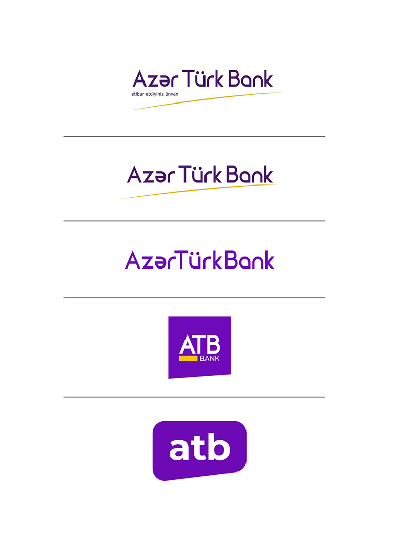 Aşağıdakı şəkillərdə Azər Türk Bankın əsas loqotipi və sub-loqotipinin yenilənmə mərhələləri göstərilmişdir.
