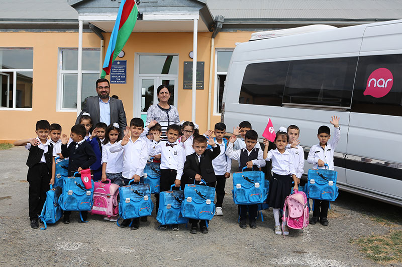 “Nar” nümayəndələri məktəblilərlə görüşüb, hədiyyələri təqdim edib və onlara yeni tədris ilində uğurlar arzulayıblar. Görüşdə bildirilib ki, mobil operatorun əsas məqsədi müharibədən zərər çəkmiş təhsil ocaqlarına dəstək olmaqdır.