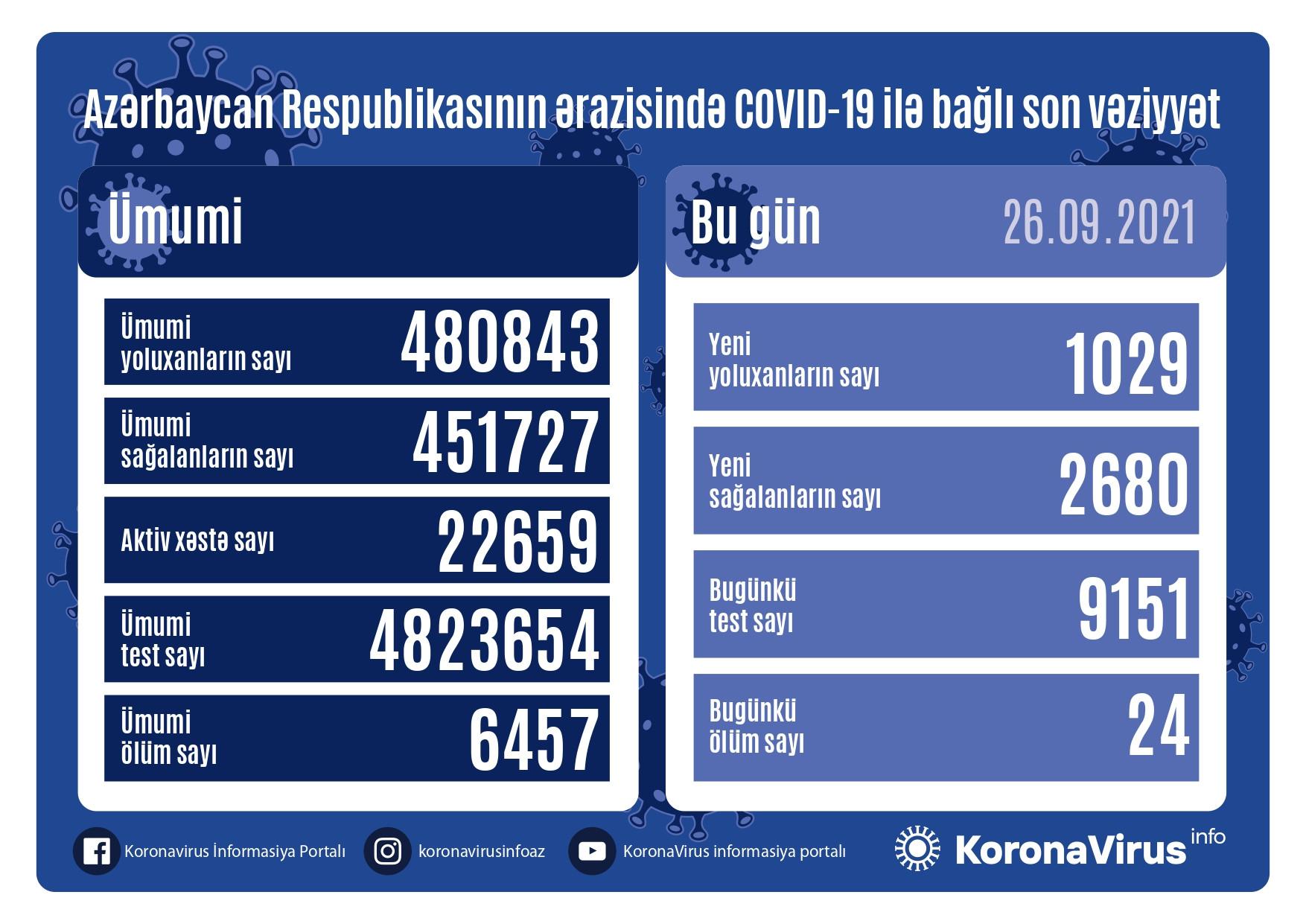 Nazirlər Kabineti yanında Operativ Qərargahdan bildirilib ki, COVID-19 üçün götürülən analiz nümunələri müsbət çıxmış 24 nəfər vəfat edib.