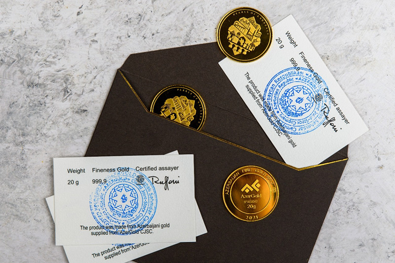 Xatırladaq ki, “AzerGold” QSC tərəfindən yerli pərakəndə bazarı üçün “Made in Azerbaijan” nişanı ilə Azərbaycan qızılı və gümüşündən hazırlanan sikkələr ilk dəfə 2018-ci ildə istehsal edilmişdir. 3 müxtəlif qızıl və gümüş sikkə kolleksiyalarının üzərində Heydər Əliyev Mərkəzi, Qobustan qayaüstü təsvirləri və Qarabağ xalçasının “Çələbi” naxışının əks olunması Azərbaycanın müasirliyinin, tarix və incəsənətinin təbliğinə yönəlib.