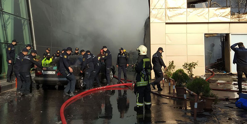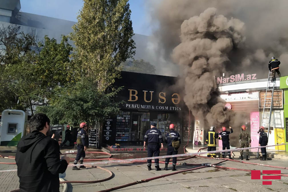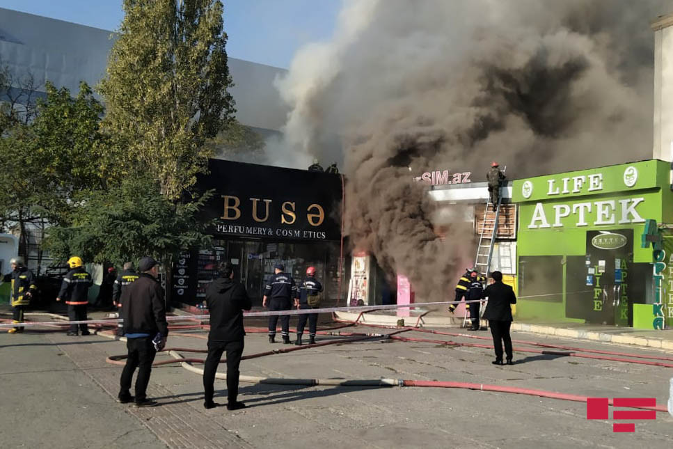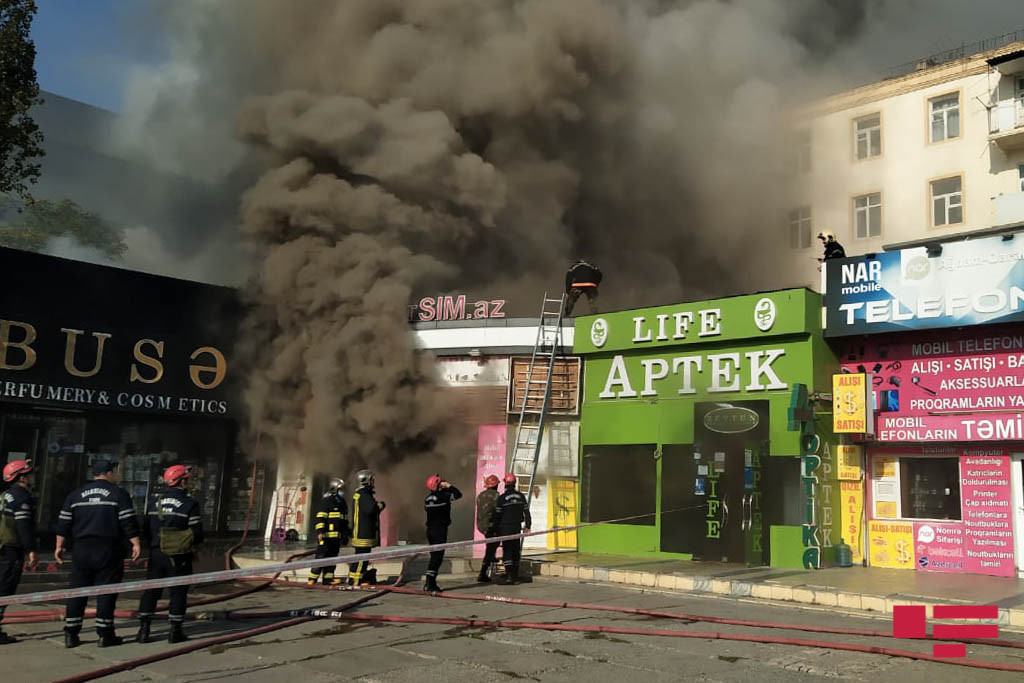 Məlumata görə, ticarət mərkəzinin yaxınlığındakı mobil telefon satışı dükanlarında və aptekdə də yanğın başlayıb.