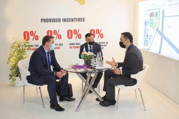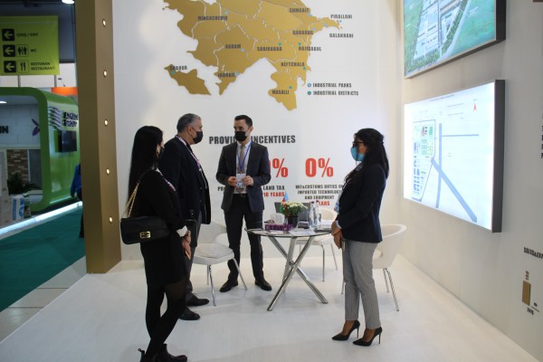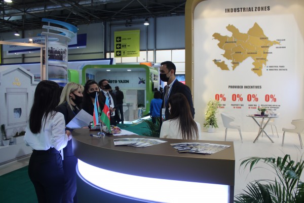 Maraqla qarşılanan stenddə sərgi iştirakçılarına ölkədə fəaliyyət göstərən sənaye zonaları və rezidentlərə tətbiq olunan güzəştlər, Qarabağda yaradılan Ağdam və “Araz Vadisi İqtisadi Zonası” sənaye parklarının konseptual planları barədə məlumat verilir.