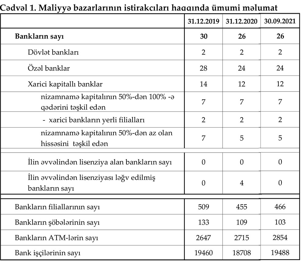 31 İyul 2021-ci il tarixinə olan bank sektorunun əsas göstəriciləri açıqlanıb.