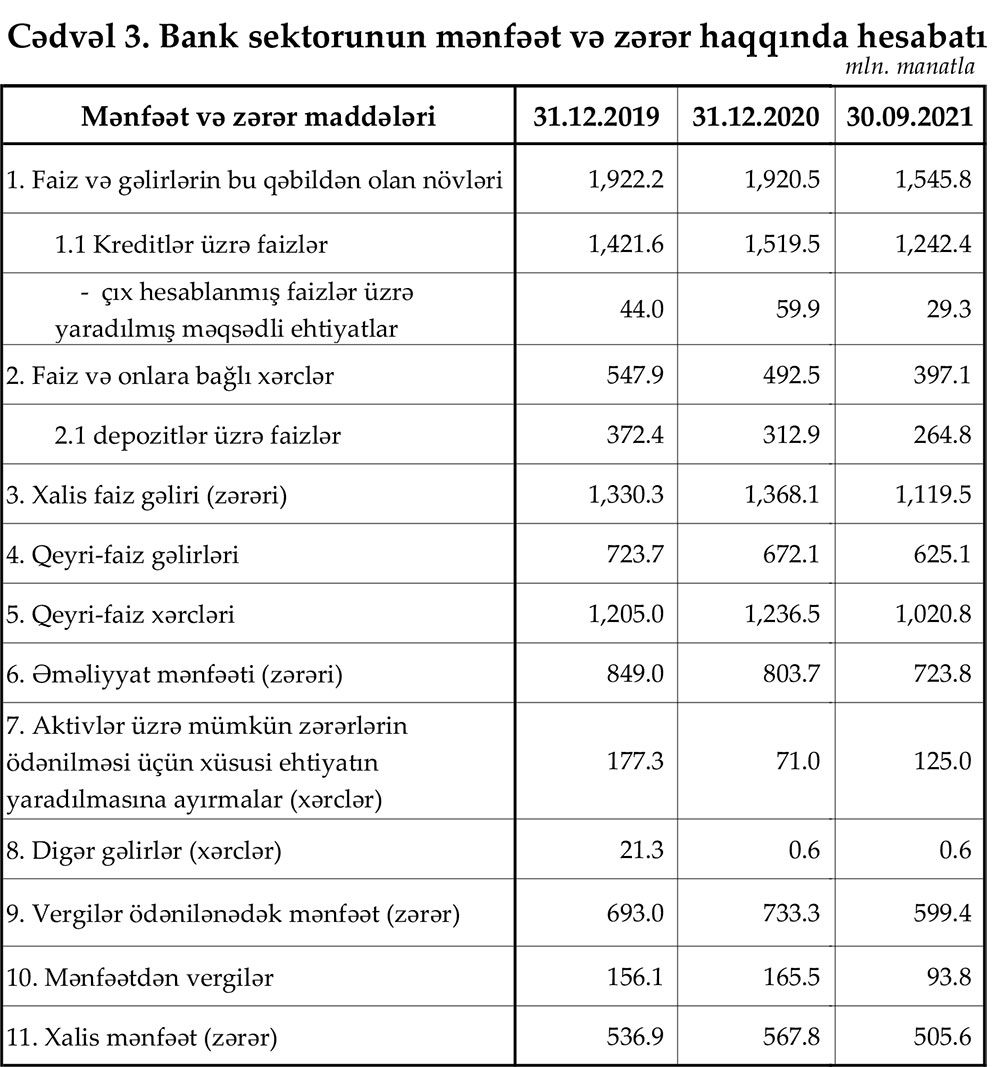 2021-ci ilin 9 ayı ərzində banklar depozitlər üzrə 264,8 milyon manatlıq faizlər ödəyiblər.
