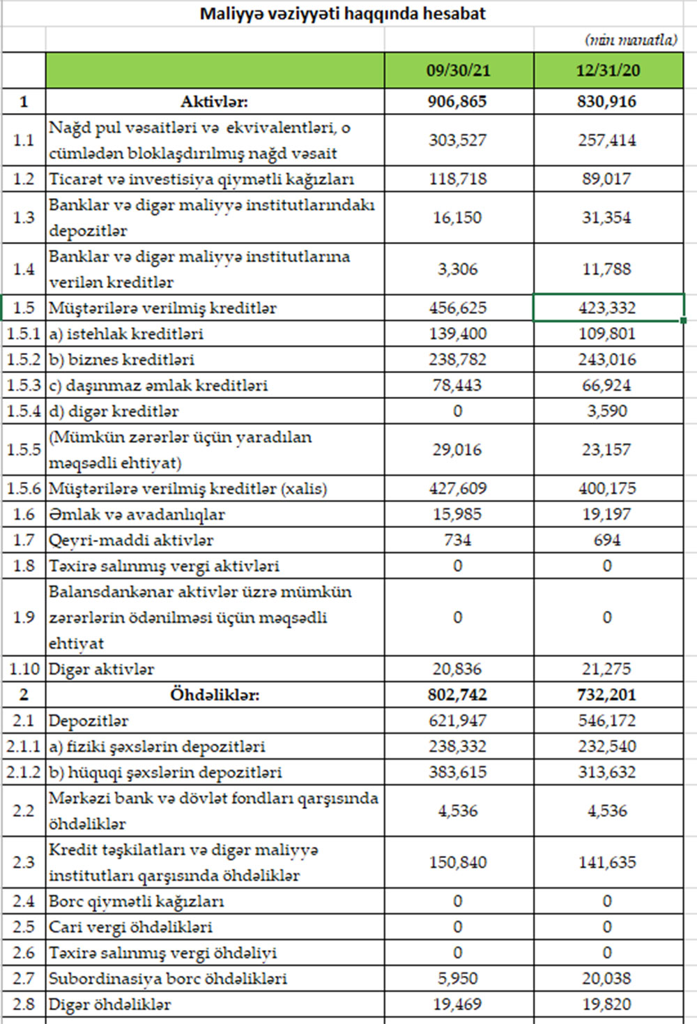 Müqayisə üçün qeyd edək ki, 2020-ci ilin yanvar-sentyabr dövründə “Rabitə Bank”ın cəmi əməliyyat gəlirləri 43 milyon 818 min manat, cəmi əməliyyat xərcləri 30 milyon 251 min manat, əməliyyat mənfəəti 13 milyon 567 min manat təşkil etmişdi. Əməliyyat mənfəətinin 9 milyon 694 min manatı ehtiyata ayırdığı üçün Bank həmin dövrü 3 milyon 873 min manat xalis mənfəət ilə bağlamışdı.