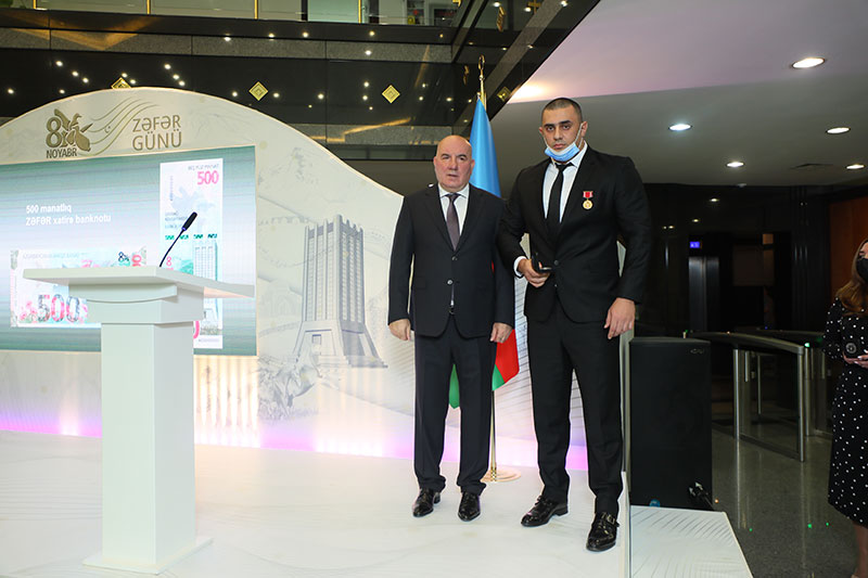 Böyük qürur hissi ilə bildirildi ki, Mərkəzi Bankın 12 əməkdaşı da Vətən Müharibəsində iştirak etmişdir. Onlar Azərbaycan Respublikası Prezidentinin müvafiq Sərəncamları ilə medallarla, həmçinin yüksək nəticələr əldə etdiklərinə görə fəxri fərmanlarla təltif olunmuşlar.