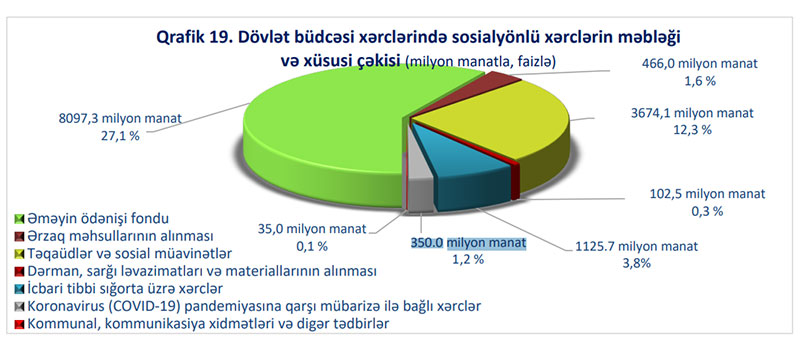 Gələn ilin dövlət büdcəsindən koronavirus (COVID-19) pandemiyasına qarşı mübarizə tədbirlərinin davam etdirilməsinə 350 milyon manat vəsait ayrılması nəzərdə tutulur.
