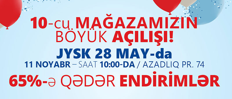 Marja xəbər verir ki, 11 noyabrda Azadlıq pr. 74 ünvanında ("28 May" metrostansiyası yaxınlığında) JYSK mağazasının açılışı nəzərdə tutulur.