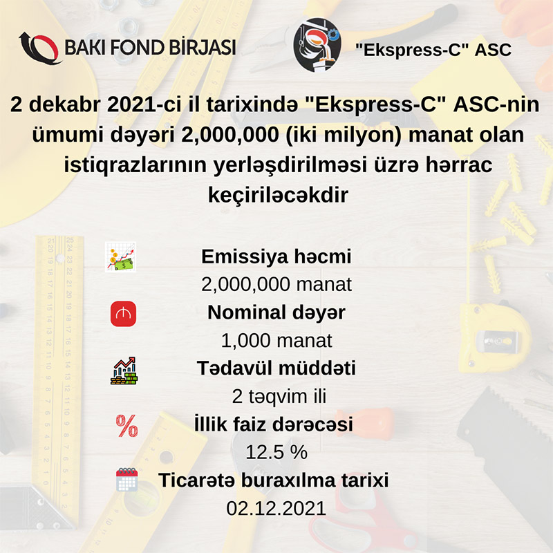 30 noyabr 2021-ci il tarixində Bakı Fond Birjasının (BFB) Listinq Komitəsinin qərarı ilə sənaye qazlarının və metal məmulatların istehalı ilə məşğul olan"Ekspress-C" ASC-nin ümumi dəyəri 2 milyon manat olan istiqrazları standart bazar seqmentində listinqə daxil edilib.