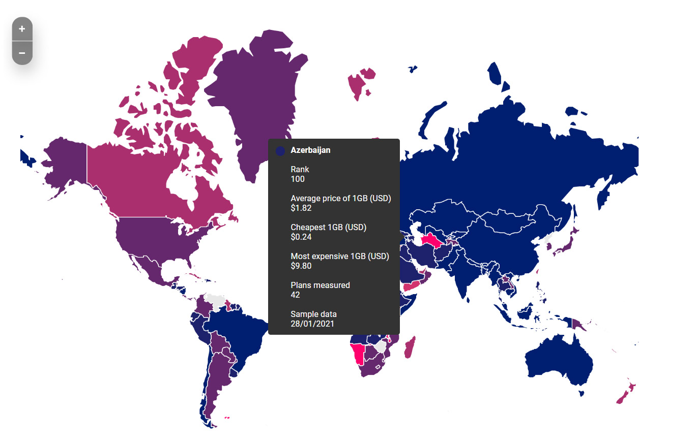 Azərbaycan mobil internetin qiymətinə görə dünyada 100-cü yerdədir
