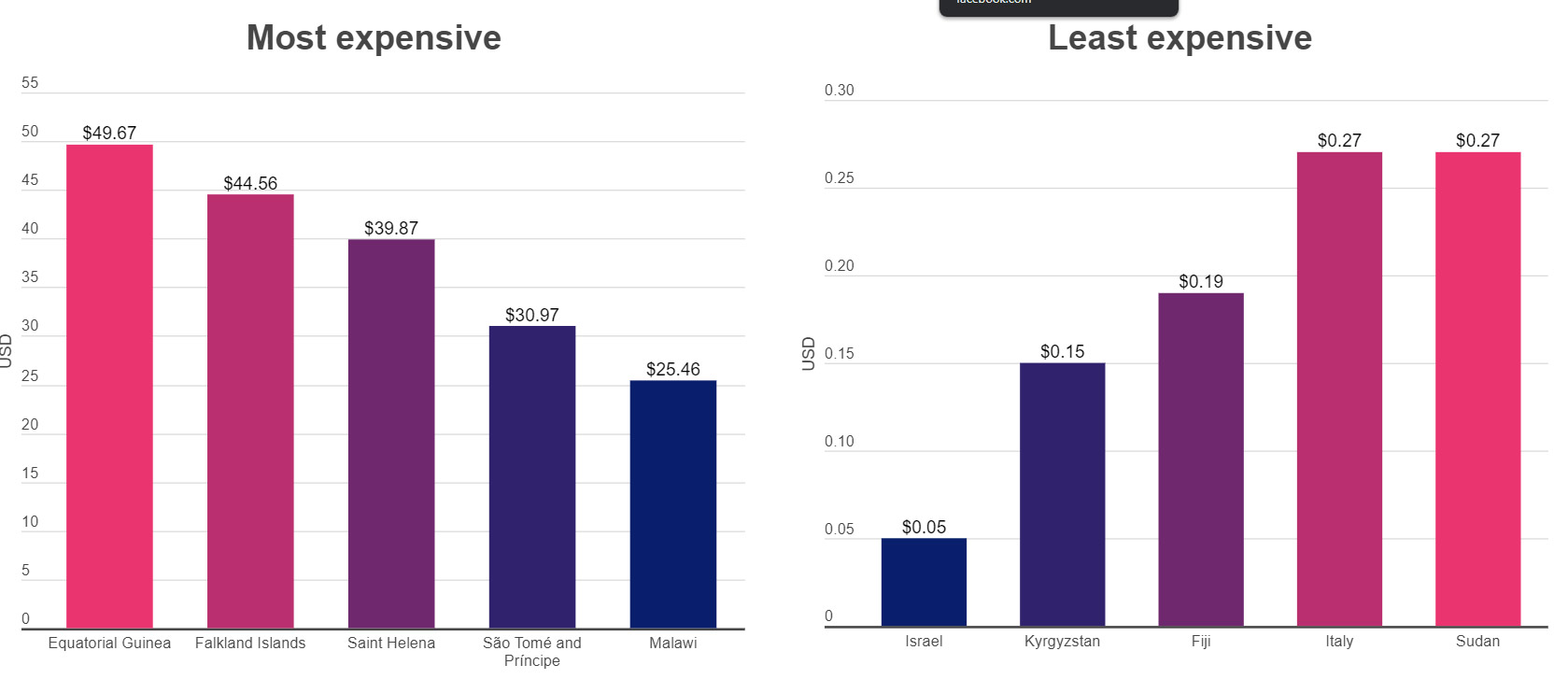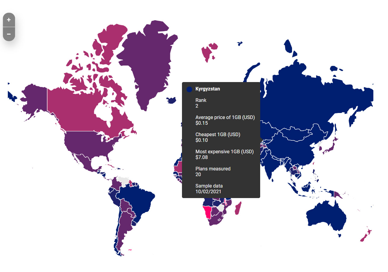 Bu göstəriciyə görə Qırğızıstan İsraildən sonra ikinci yerdədir. 1 GB mobil internetin orta pərakəndə satış qiyməti Qırğızıstanda 0,15 dollar, İsraildə isə 0.05 dollardır.