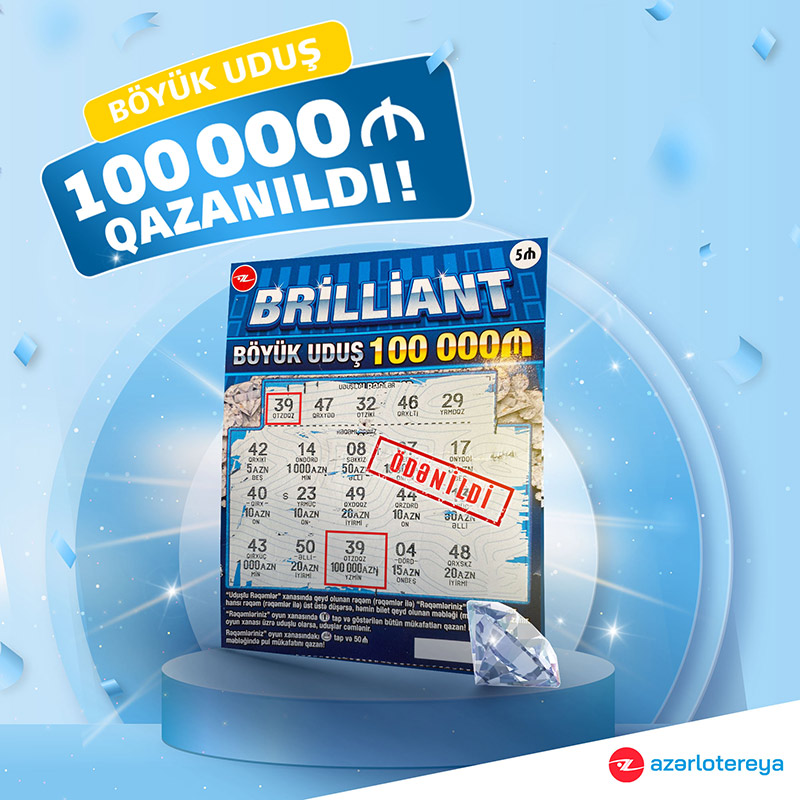 “Brilliant” ani lotereyasında növbəti böyük uduş – 100.000 MANAT QAZANILDI