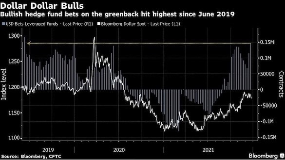 Hedcinq fondları artıq möhkəmlənən dollar ssenarisinə hazırlaşır: 2021-ci ilin son həftəsində ABŞ valyutasının artımı üzrə mövqelərini kəskin şəkildə artırıblar. Dollar fyuçersləri və opsion möhtəkirlərinin xalis uzun mövqeyi 2019-cu ilin əvvəlindən pik həddinə çatıb.