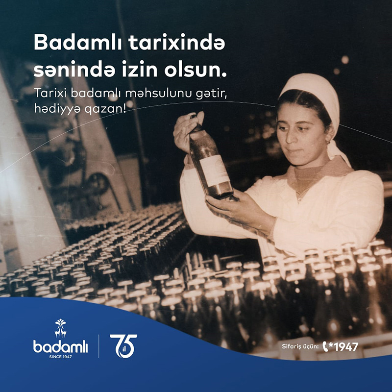 (®) Ölkəmizin ən köklü brendlərindən olan "Badamlı" 75 illik yubileyi münasibətilə öz muzeyini yaradır. Bu muzeyin özəlliyi ondan ibarətdir ki, burada sizin də iziniz ola bilər.