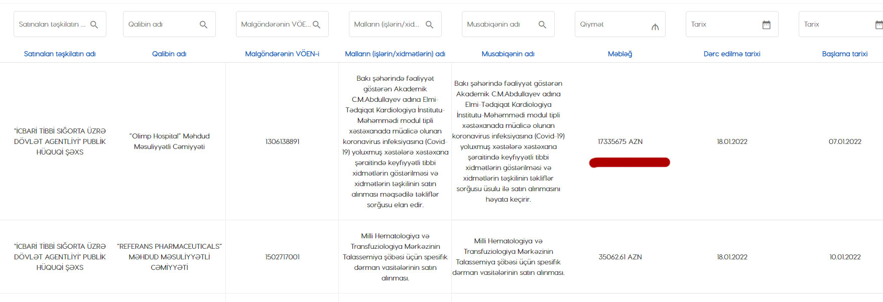 Marja xəbər verir ki, qalib şirkət “Olimp Hospital” MMC-dir.