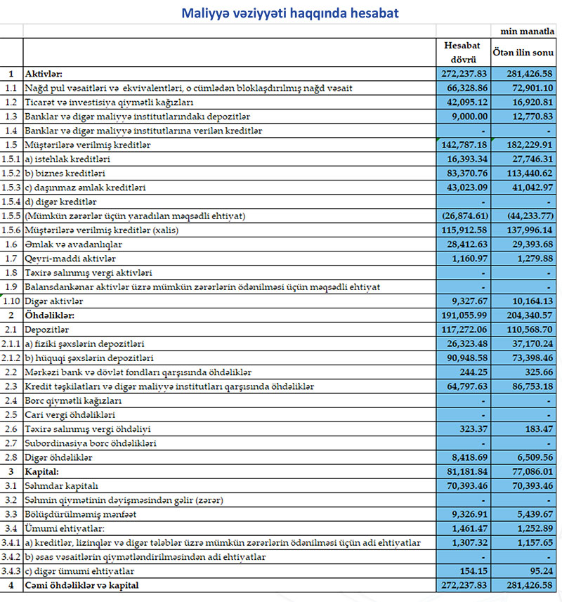 Azərbaycan bankı 9 milyon manatdan çox xalis mənfəət açıqladı