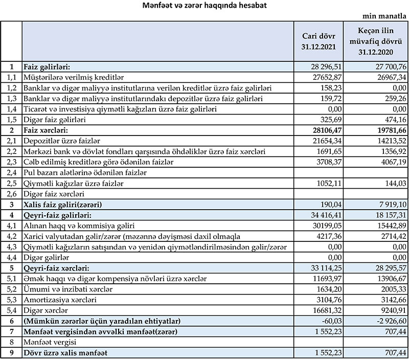 “Muğanbank” ASC 2021-ci il üzrə maliyyə göstəricilərini açıqlayıb.