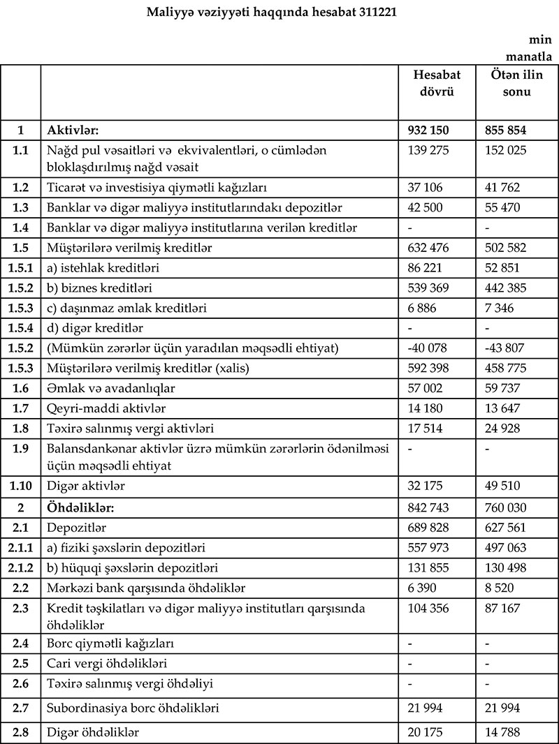AKTİVLƏRİ 1 MİLYARD MANATA YAXINLAŞIR