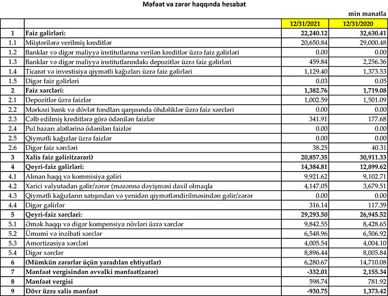 Ötən il “Yapı Kredi Bank Azərbaycan”ın cəmi əməliyyat gəlirləri cəmi əməliyyat xərclərini üstələdiyindən Bankın 5 milyon 949 min manat əməliyyat mənfəəti yaranıb. Bank mümkün zərərlər üçün yaradılan ehtiyatlara 6 milyon 281 min manat ayırdığından və 599 min manat mənfəət vergisi ödədiyindən ötən ili 931 min manat xalis zərər ilə bağlayıb.
