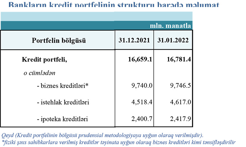 31 yanvar 2022-ci il tarixinə olan bank sektorunun əsas göstəriciləri açıqlanıb.
