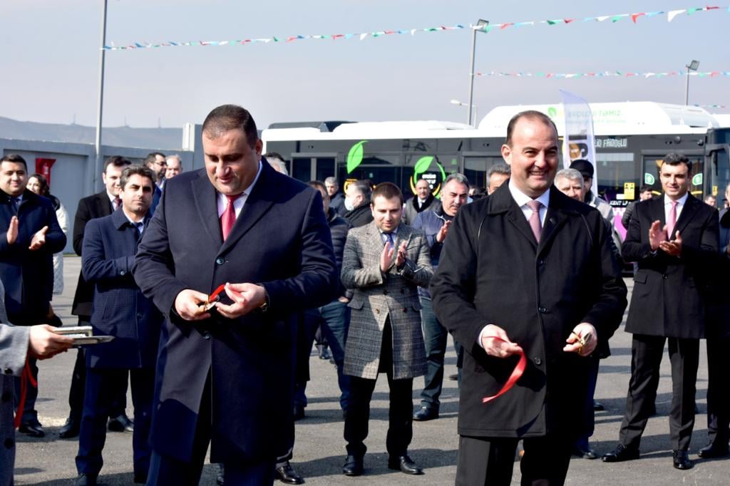 Təqdimat mərasiminin yekununda istehsalat bazası və yeni alınmış avtobuslara baxış keçirilib