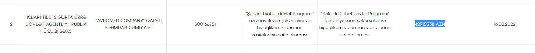 "Avromed" dövlət agentliyindən 43 milyon manatlıq sifariş aldı