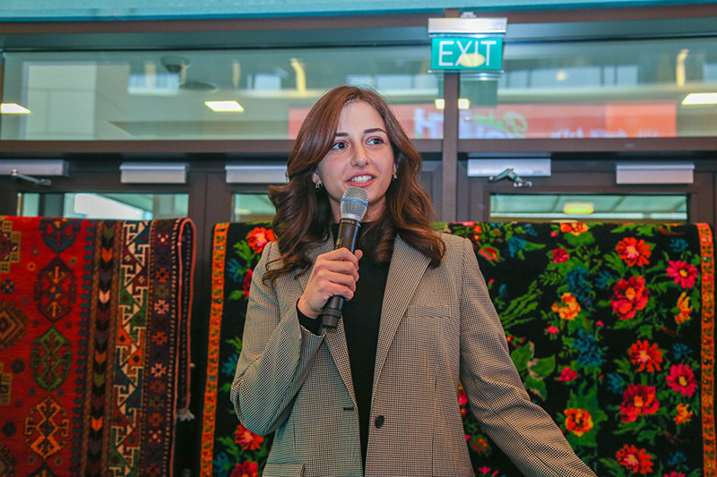 Festival çərçivəsində təşkil edilən sərgidə milli geyimlər, müxtəlif xalça məktəblərinin nümunələri, bayram mətbəxinin şirniyyatları nümayiş etdirilib.