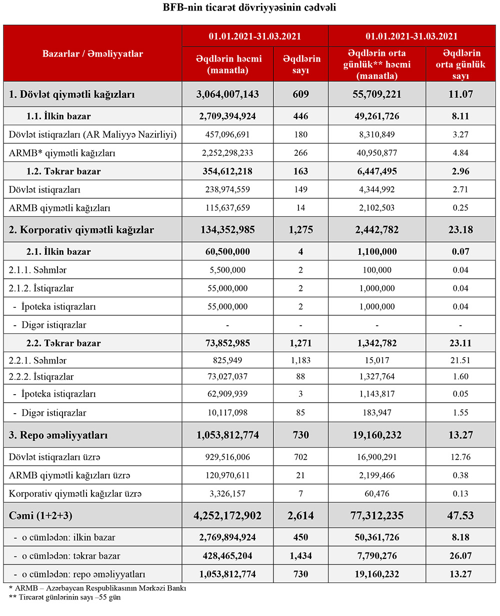 Maliyyə Nazirliyi 2021-ci ilin 1-ci rübündə (yanvar-mart) dövlət istiqrazlarının yerləşdirilməsi yolu ilə 457 milyon 97 min manat cəlb etmişdi.